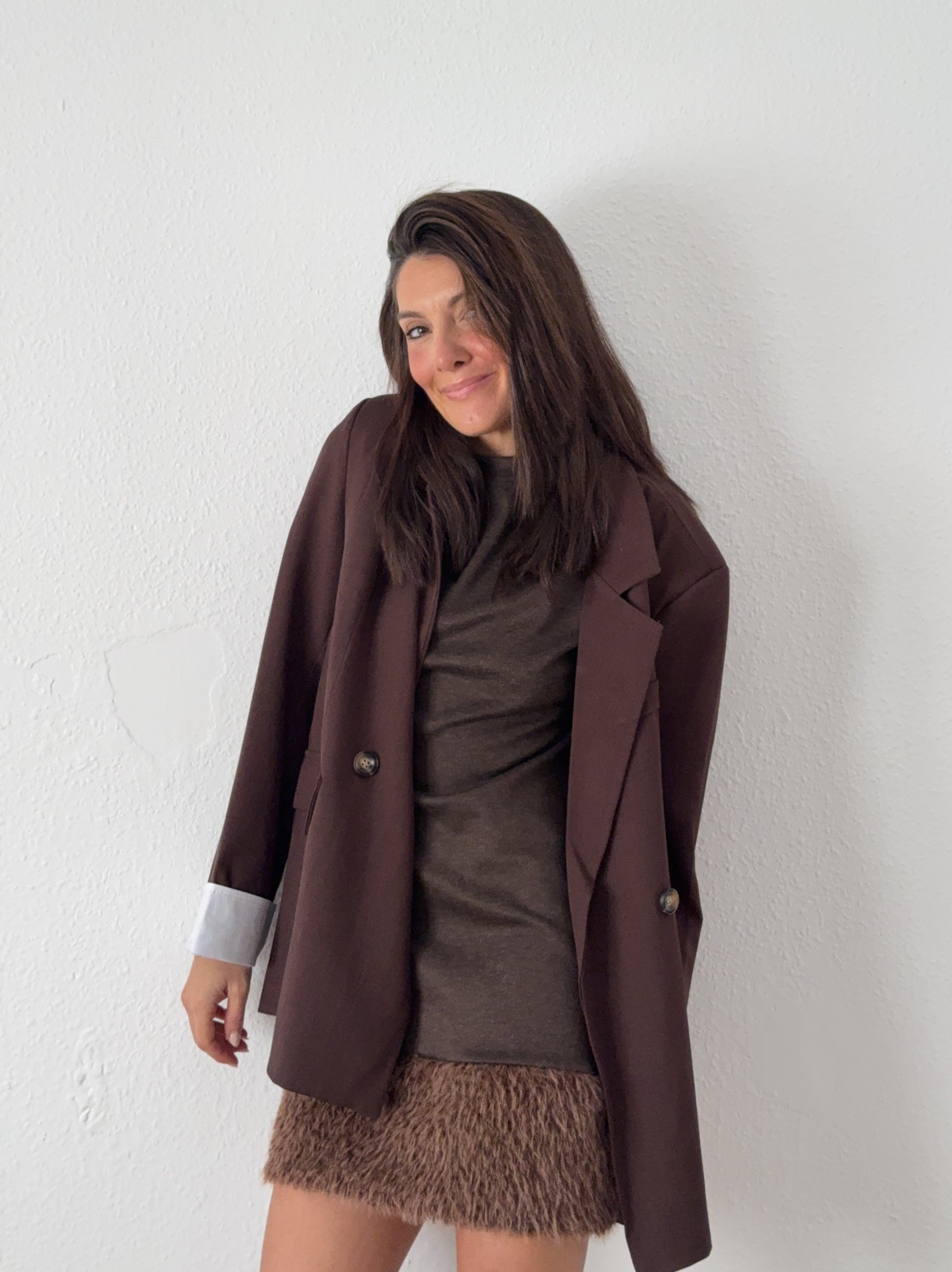 Blazer Overside Color Marrón con puños de camisa.