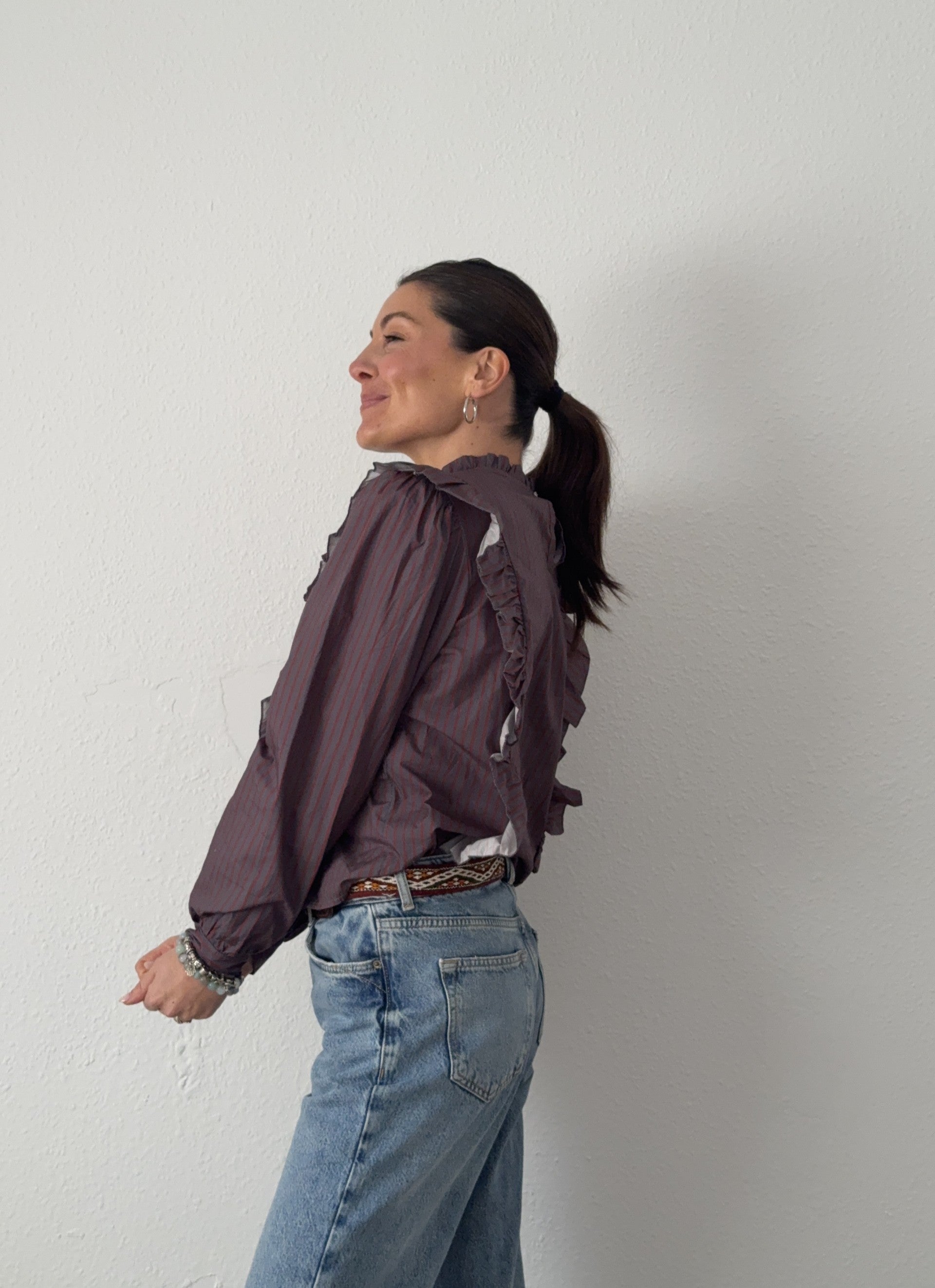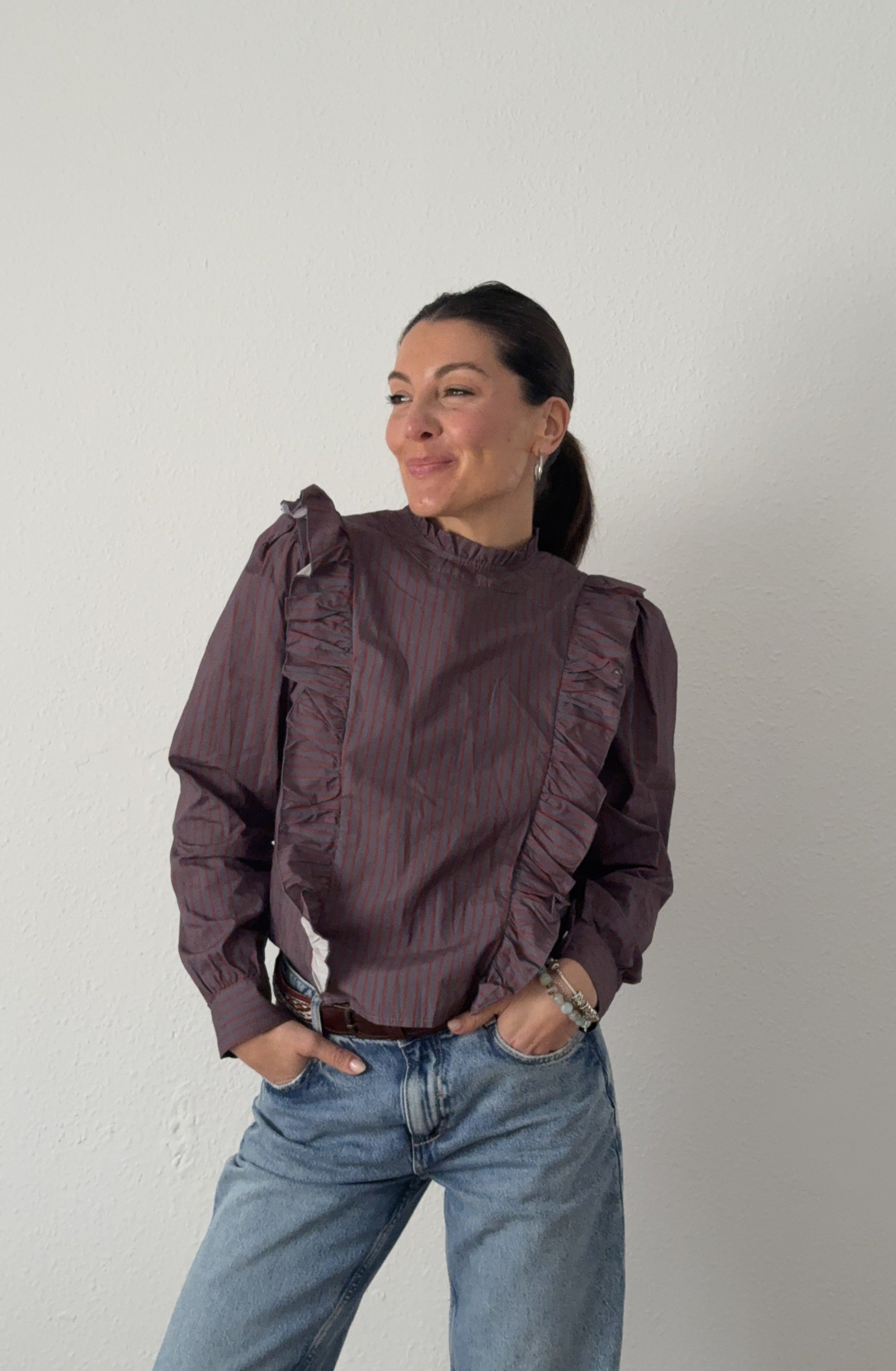 Camisa Llena de detalles especiales que la hacen única, con rayas y volantes.