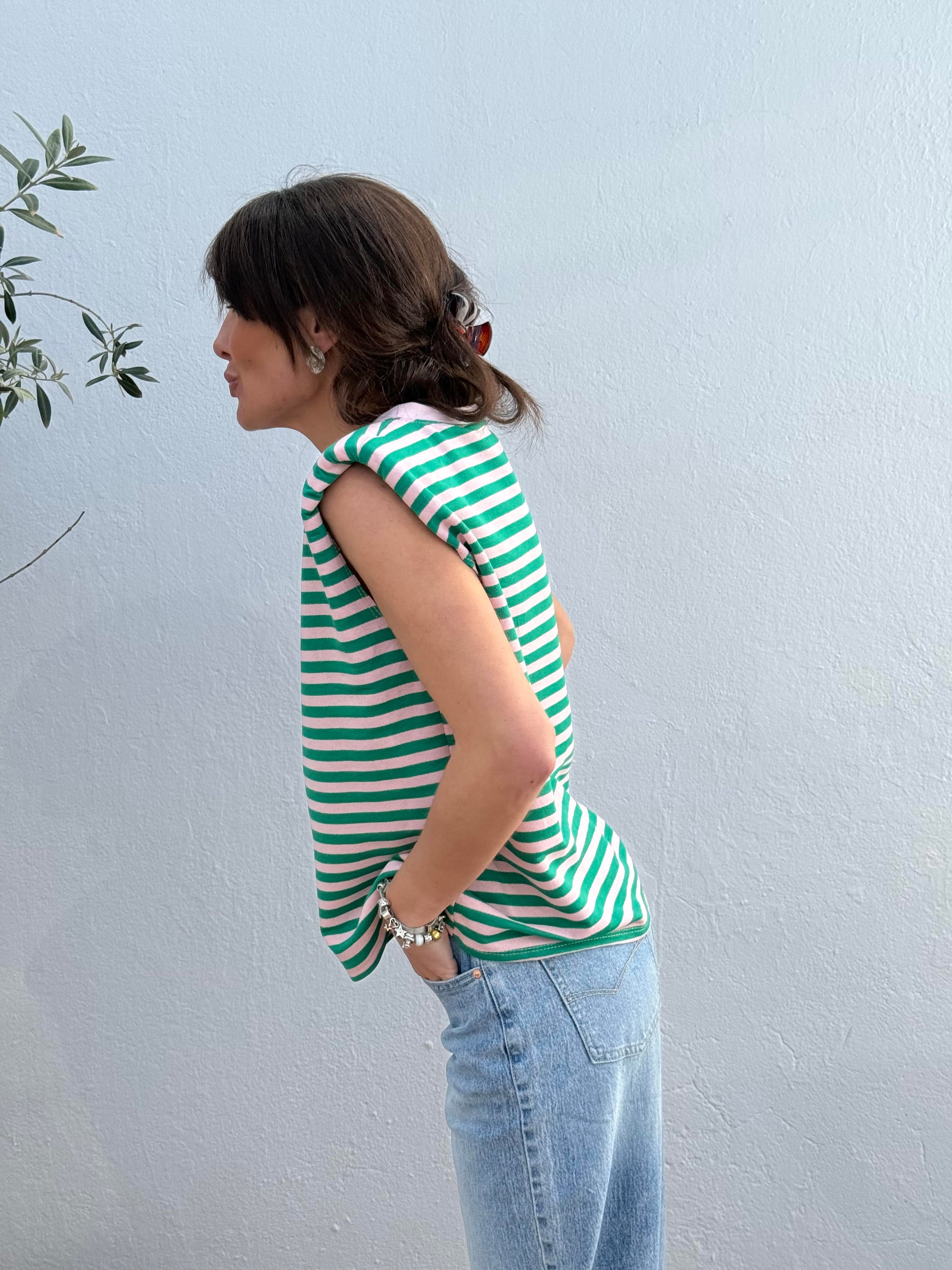 Camiseta Hombreras Verde/Rosa