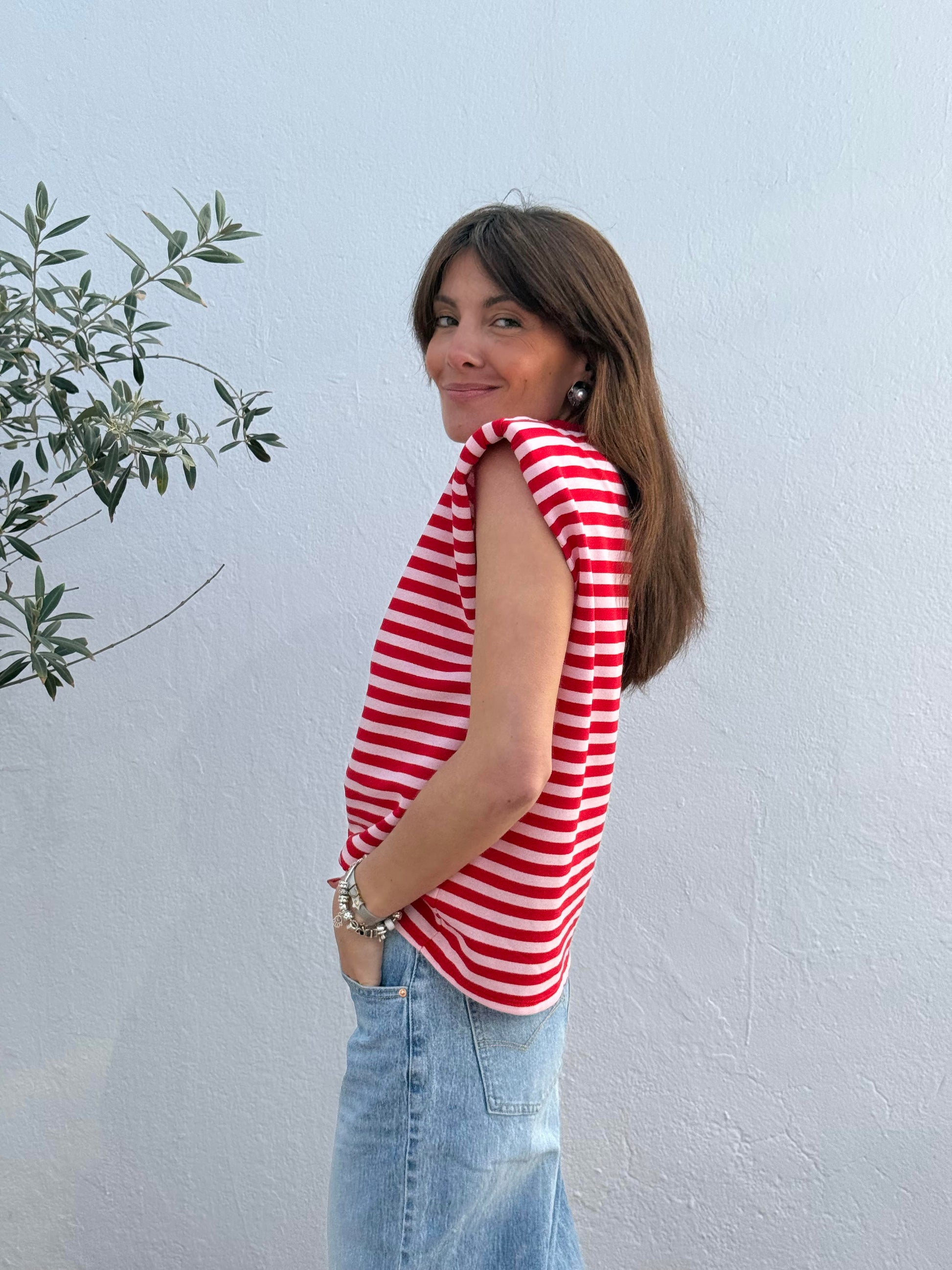 Camiseta Hombreras Rosa/Rojo