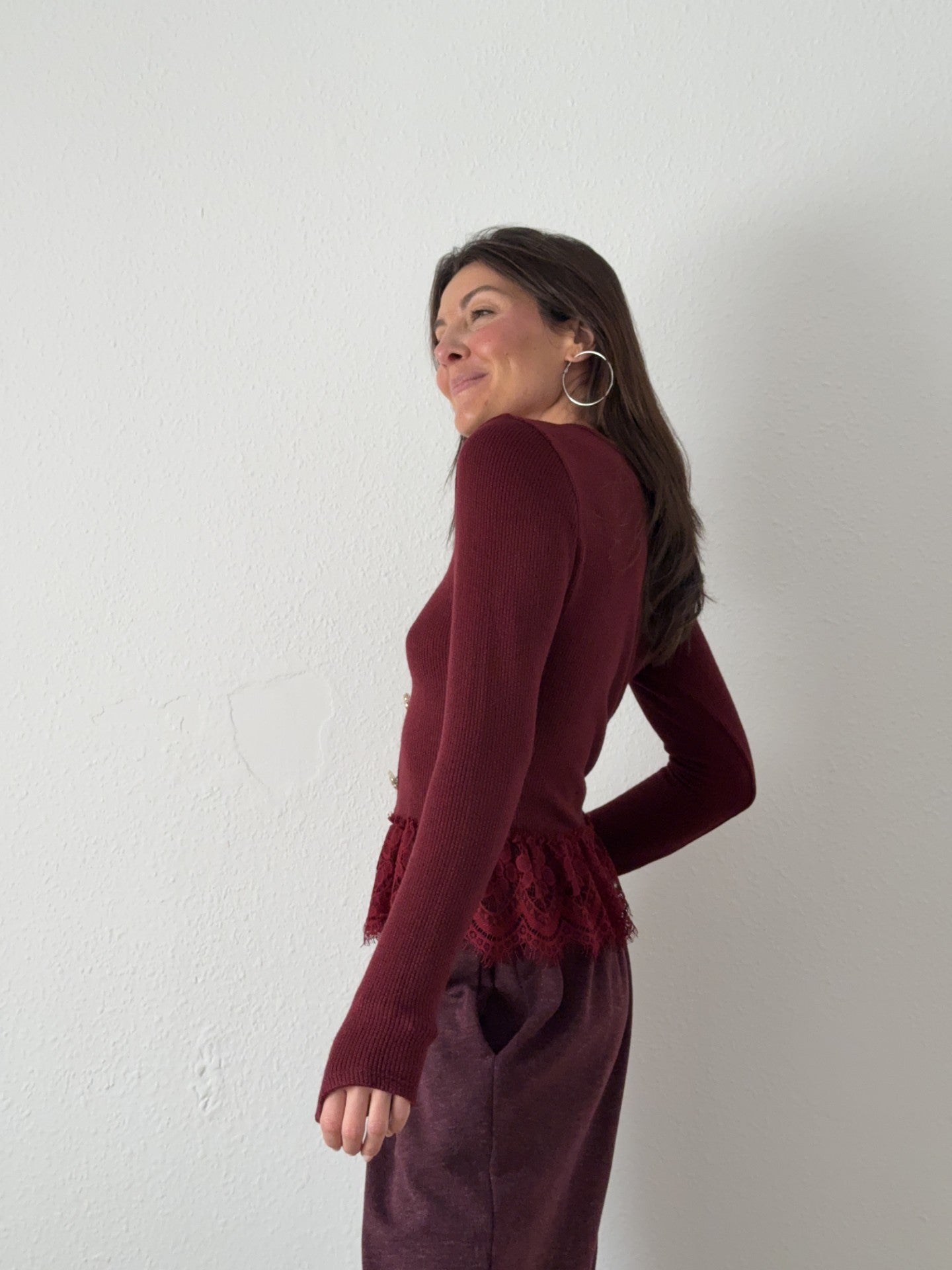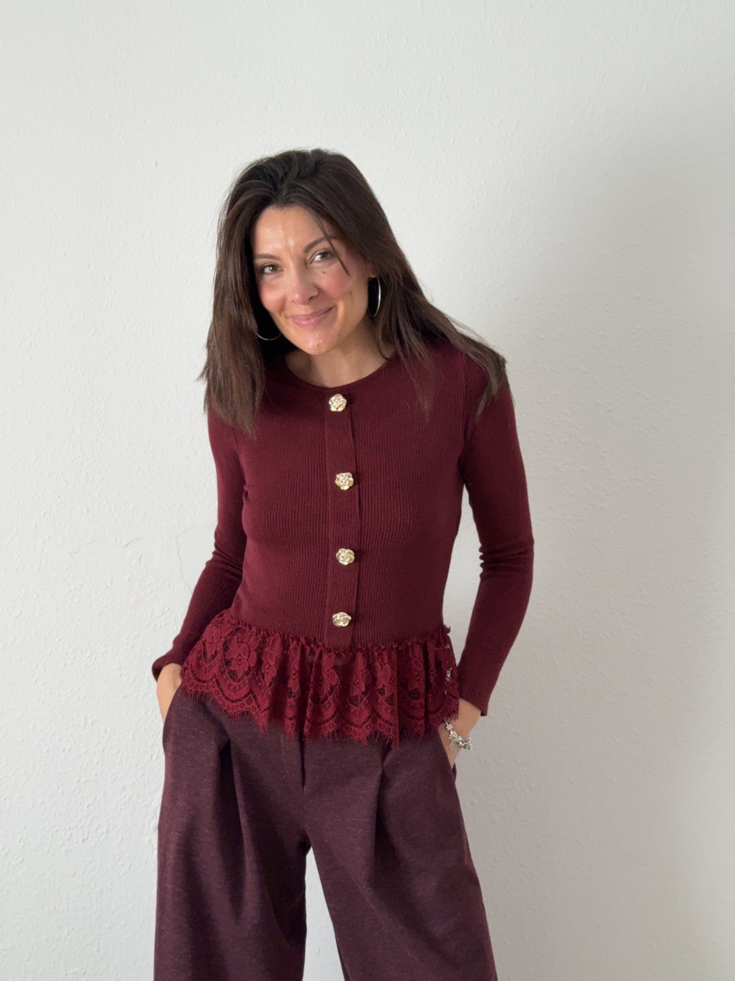 Camiseta Abotonada Puntilla Granate