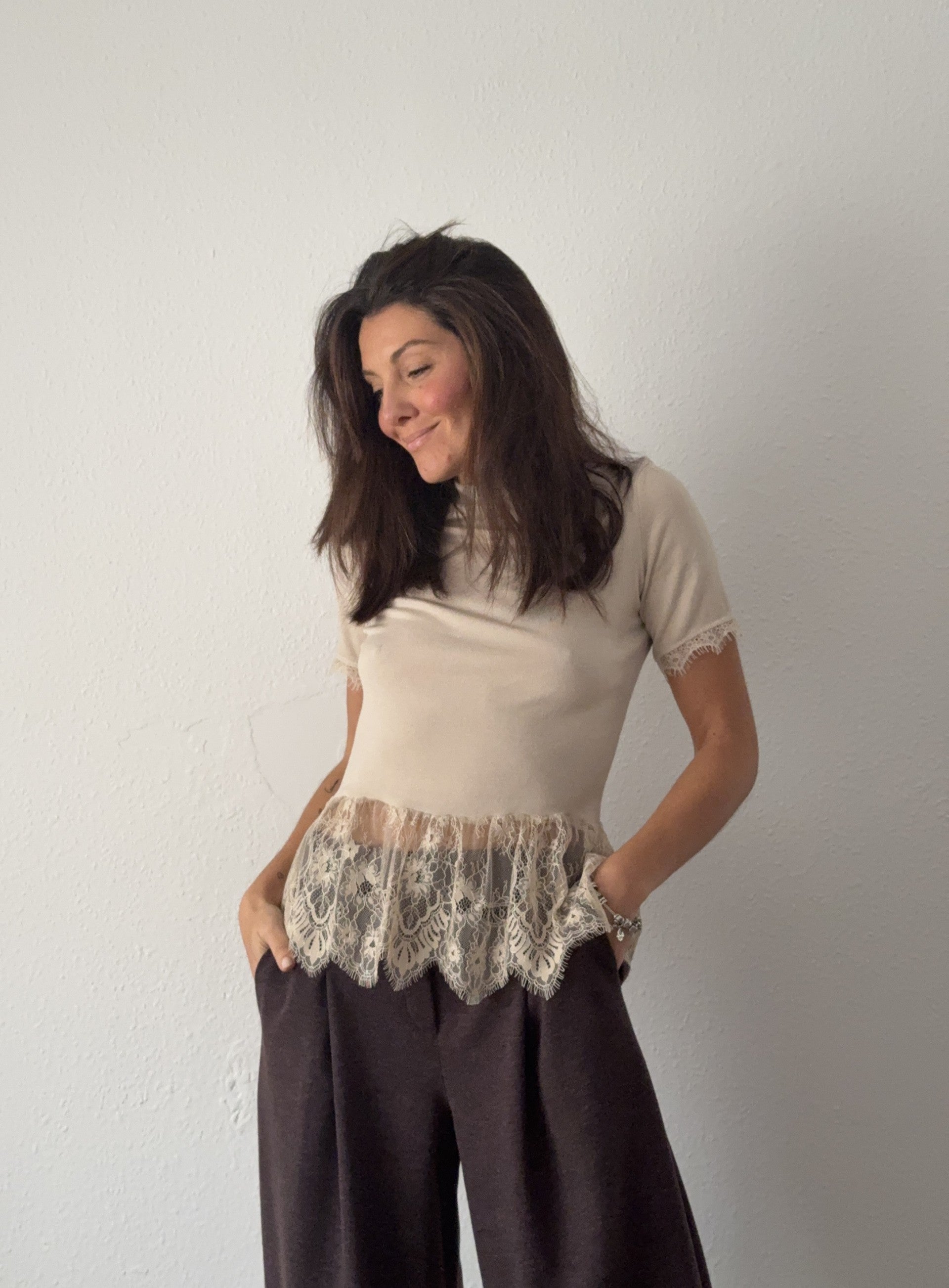 Camiseta Puntilla crema, calentita y con un detalle que la hace especial