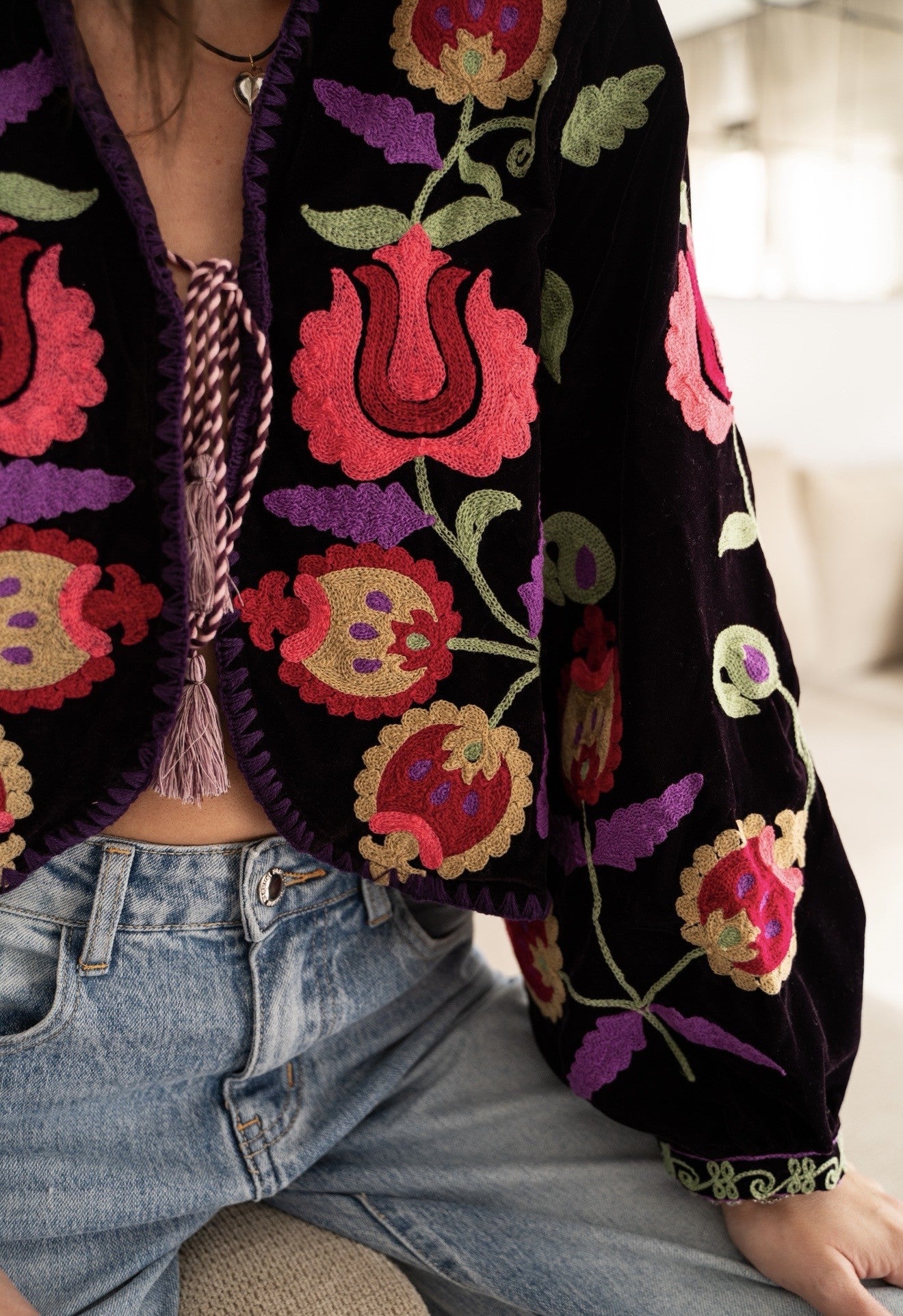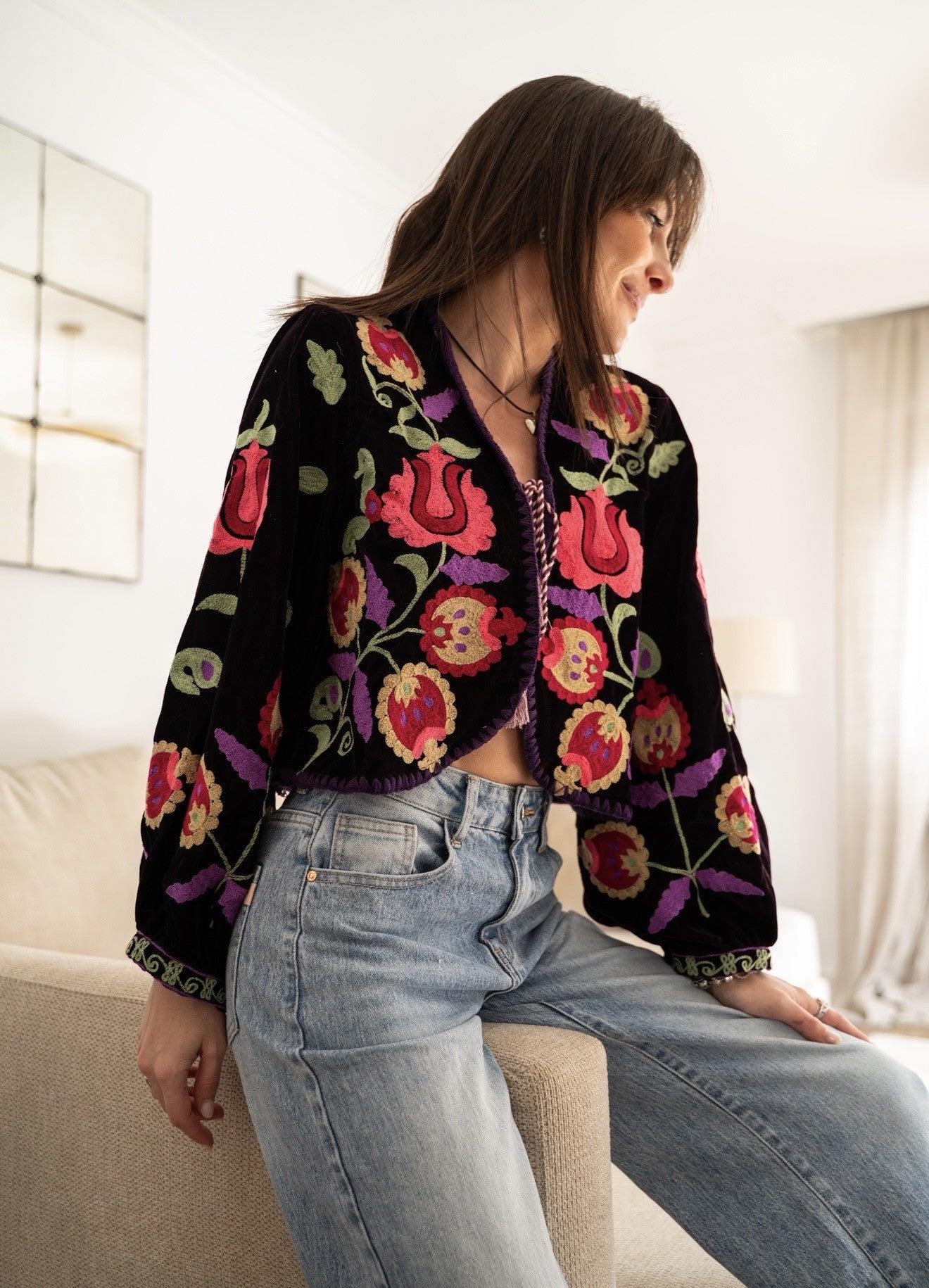 Preciosa chaqueta de terciopelo con flores bordadas. Edición limitada. Solo para los armarios mas especiales.