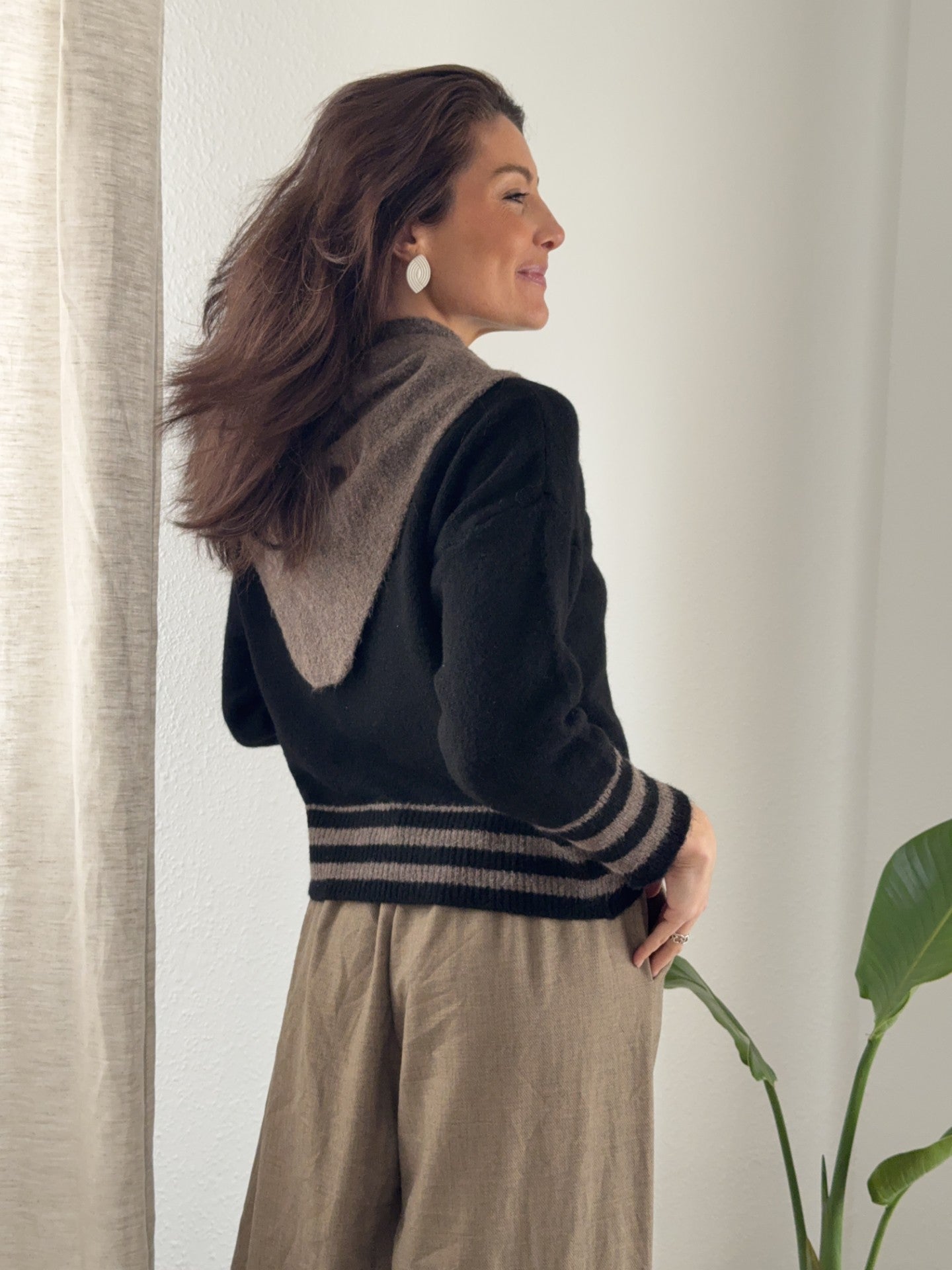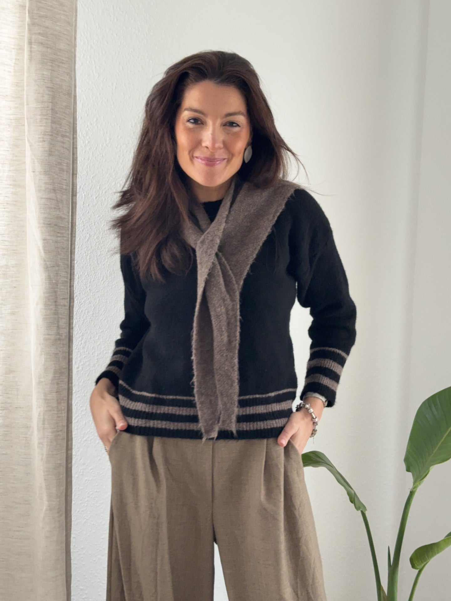 Jersey color negro con detalle de rayas en los puños y bandana incluida