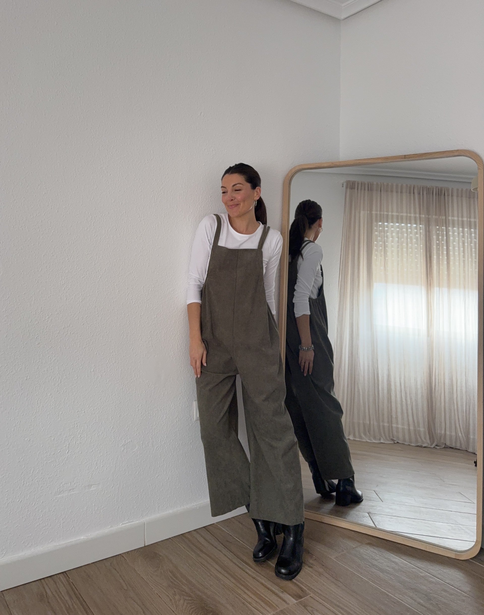 Mono de Pana Marrón, amplio con la camiseta blanca incluida.
